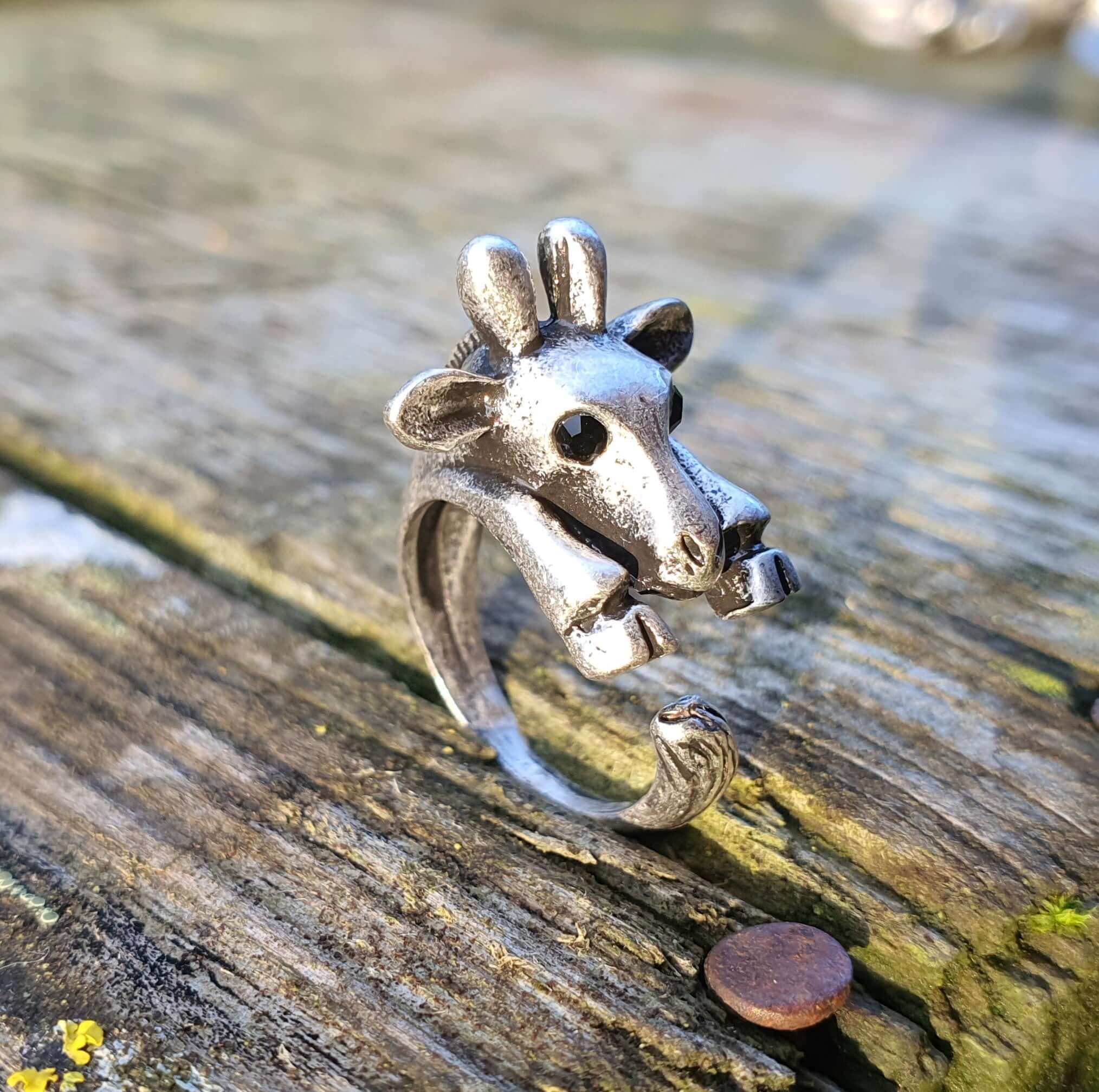 Silver Gazelle Ring Adjustable Animal Jewellery Retro Jewelry